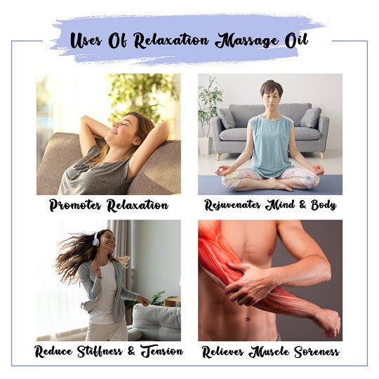 Massage with this deeply moisturizing and nourishing, Relaxation Body Massage oil provides your body with essential nourishment, stress relief, and better blood circulation. Its silky, non-sticky, Vitamin E-rich Almond Oil base nourishes the body and soothes the senses. It also induces deep sleep and a feeling of relaxation in the body. This massage oil is used to ease away tension, stress, and anxiety.