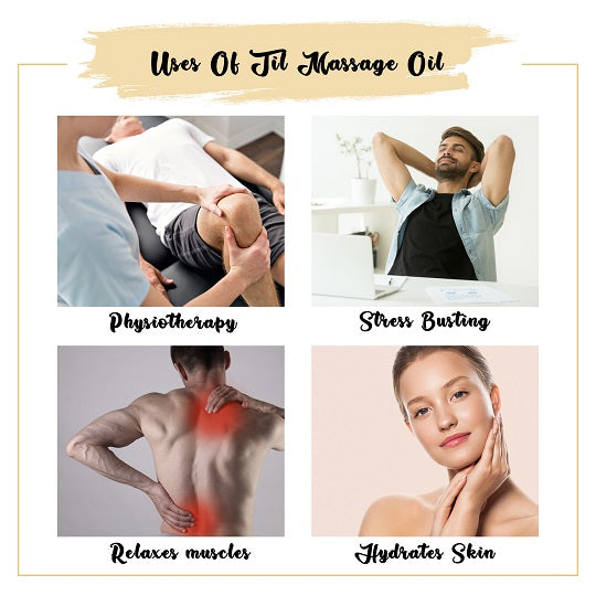 Til Body massage oil is made from raw or toasted sesame seeds. Til oil strengthens the physical, mental, and emotional well-being of our bodies. The deep massage using sesame oil also allows us to reunite with our own bodies and with nature, in order to create harmony, heal and rejuvenate. Considering its many uses and health benefits, sesame seed oil has sometimes been referred to as the Queen of Oils.