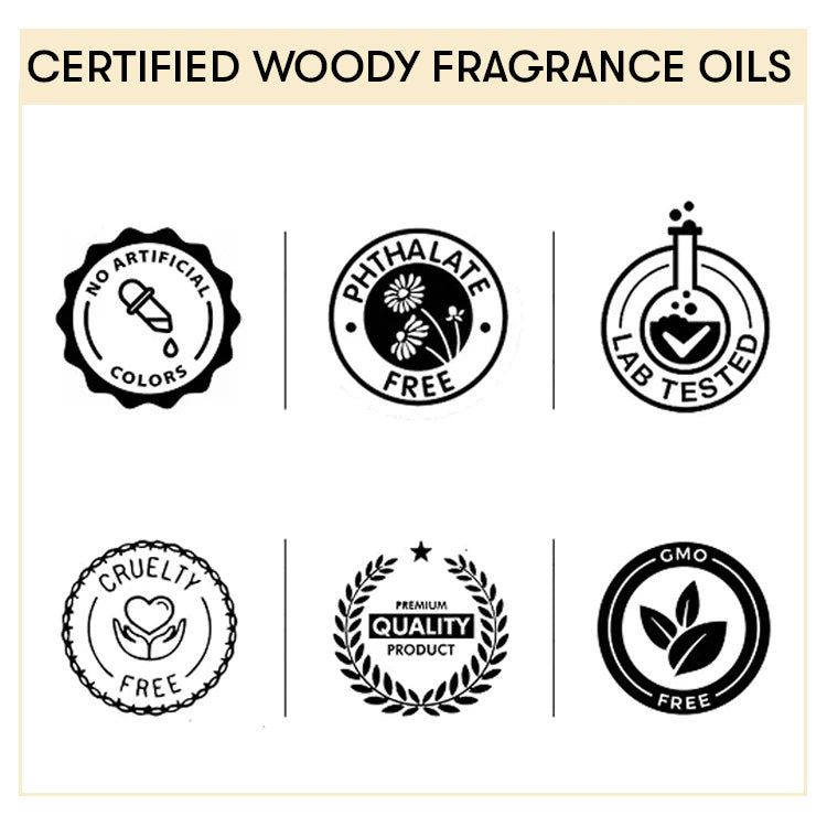 | Oils Name | Chandan Kesar Fragrance, Cedar Oakmoss Fragrance, Warm Woods Fragrance, Sandalwood Fragrance, Oudh Twist Fragrance. |