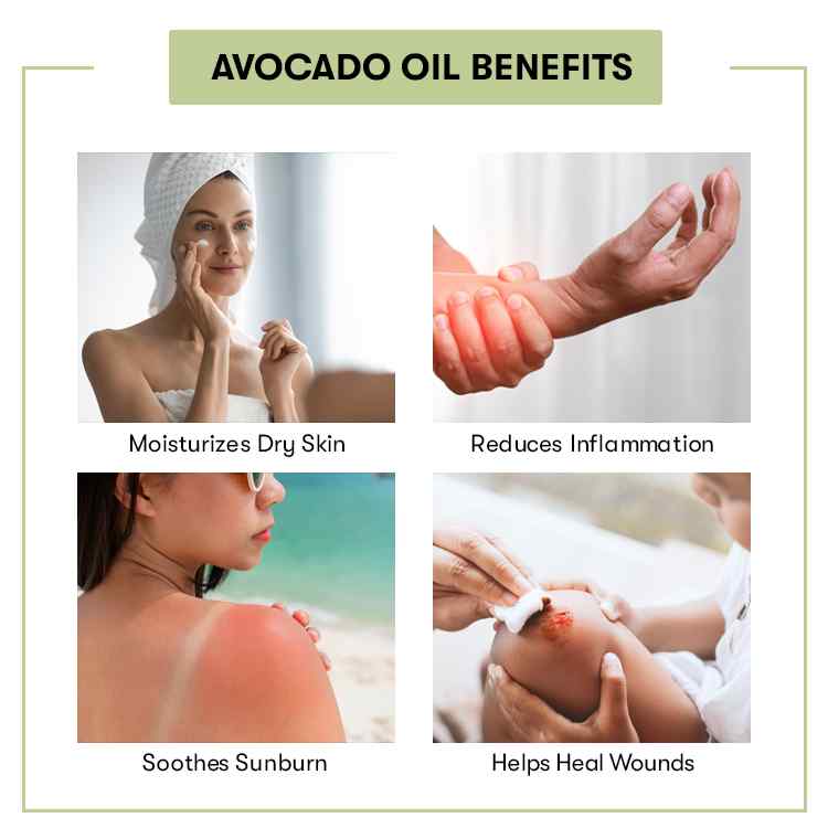 Avocado oil is excellent for the skin because of its anti-inflammatory and moisturizing properties.