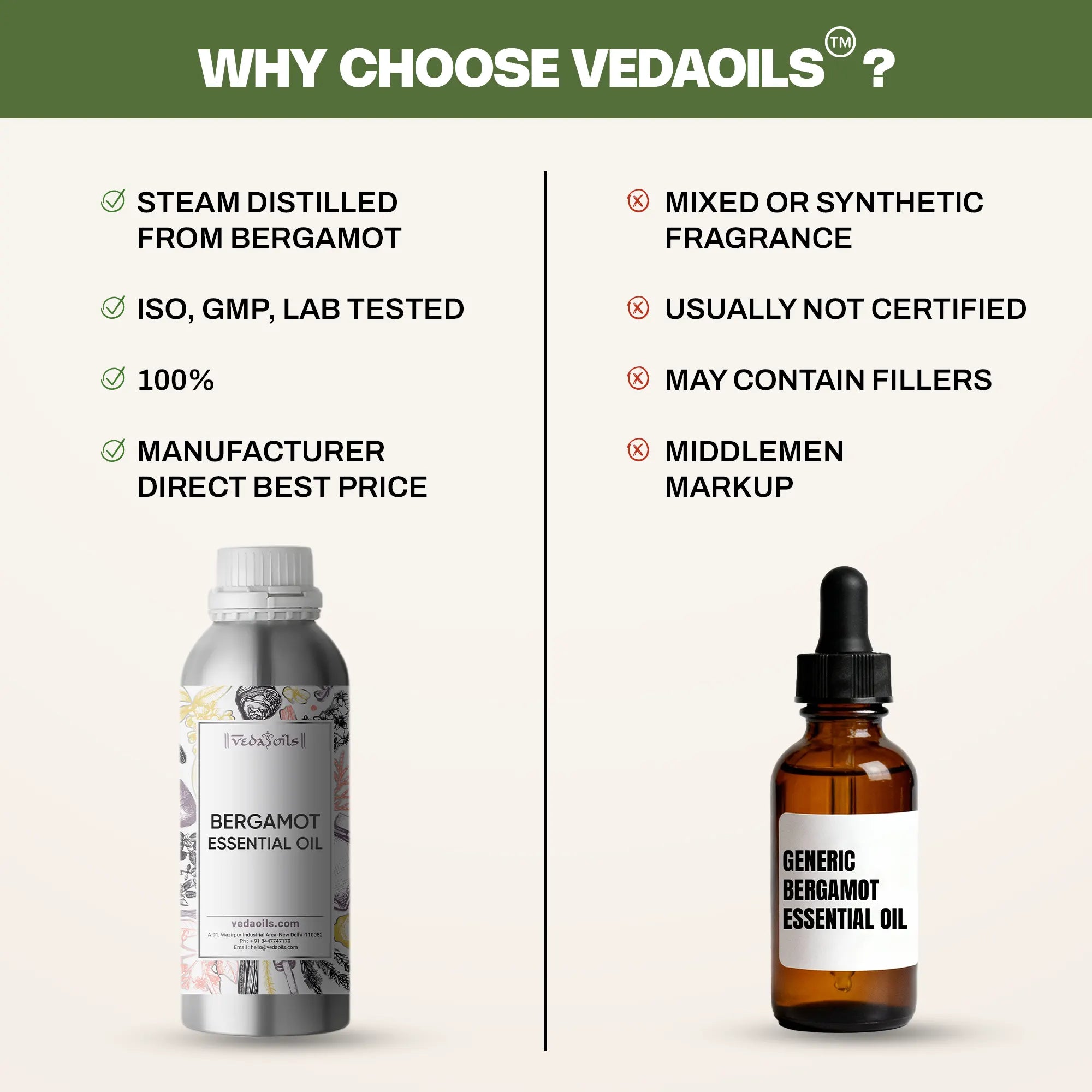 VedaOils is one of the leading Wholesale suppliers, manufacturer, and exporter of Organic Bergamot Essential Oil and other Essential oil in India. We offer the purest forms of essential oils to our customers. No chemicals, additives, or fillers are added to them. They also do not contain any artificial colors, preservatives, and fragrances. Therefore, they prove to be ideal for daily use. Though entirely natural, you should dilute bergamot essential oil before using it for topical application as it is highly concentrated.