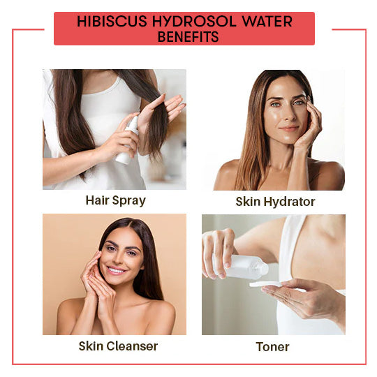 Our natural Hibiscus Hydrosol is effective in balancing the pH level of your skin. You can combine it with seaweed extracts and tea tree oils to obtain a glowing complexion for your face. Hibiscus water contains anti-inflammatory properties that can be used to soothe skin irritation and rashes. The antioxidants present in pure Hibiscus Hydrosol fight aging effects.