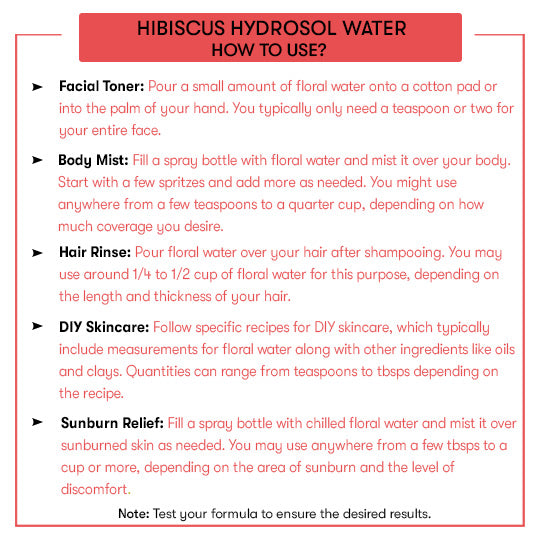 You can incorporate natural Hibiscus Hydrosol in your daily beauty care treatments, for obtaining fresh, smooth, and flawless skin. Making DIY face packs, face scrubs, and face masks with it will help to cleanse your skin naturally. The sweet and blissful fragrance of Hibiscus Floral Water makes you feel lively and energetic and these benefits can be incorporated in aromatherapy treatments as well.