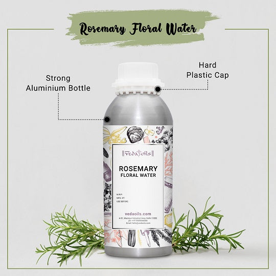 Rosemary Floral Water is prepared by the steam distillation of Rosemary essential oil, made from the leaves of fragrant, beautifully scented plant. This Hydrosol is one of the most popular floral waters, especially in its use in cosmetics. This Floral Water has been used for cosmetic and skincare purposes since ancient times.