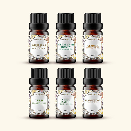 | Oils Name | Tulsi Fragrance, Sandalwood Fragrance, White Tea & Aloe Fragrance, Almond Fragrance, Neem Basil Honey Fragrance, Neem Aloe Fragrance |