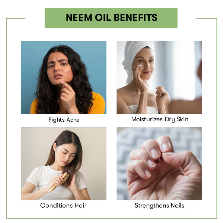 A: Neem Oil promotes hair growth, prevents dandruff, kills lice, etc.
