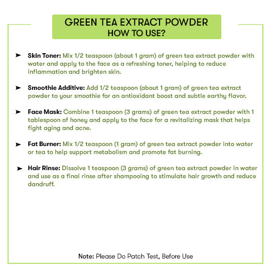 CAUTION: Green Tea Extract powder is made for topical use only. We do not promote self-medication. Users of this website are advised to consult with their physician before making any decisions concerning their health.
