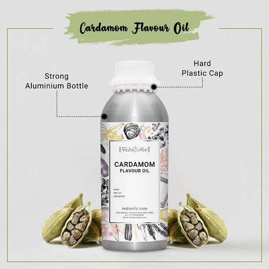 Buy Cardamom flavor oil at the best price in India through VedaOils online portal. We ensure smooth and safe transactions. We also employ a high standard of delivery to supply your order in the best quality. You can buy Cardamom Essence Oil at wholesale prices as we are offering them in bulk quantities.