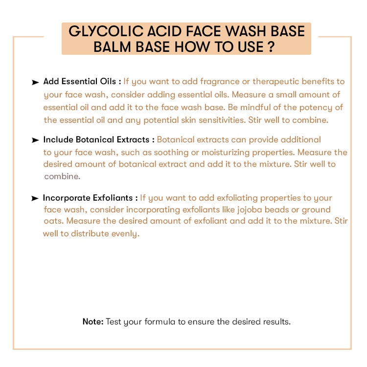 Our glycolic acid face wash base contains 70% glycolic acid.