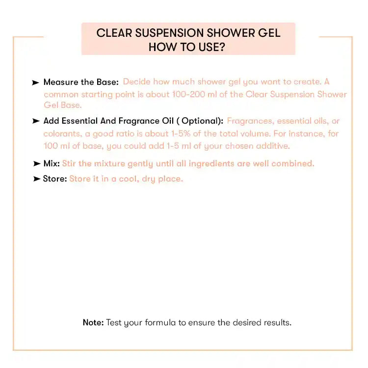 Clear suspension shower gel bases are mild and non-irritant on the skin as they help maintain the skin's natural pH balance. It also hydrates the skin and keeps it moisturised.