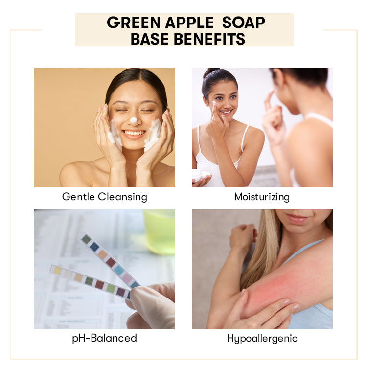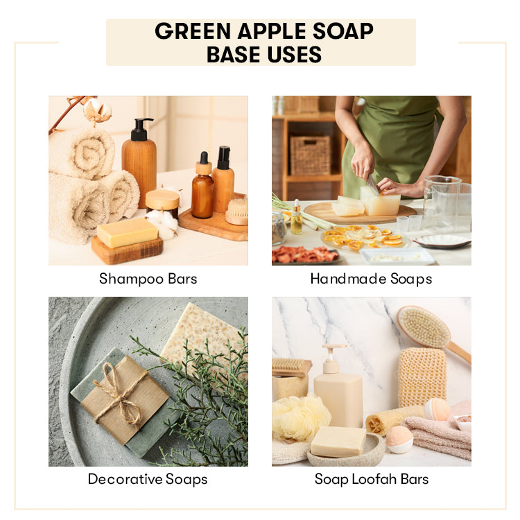 Our soap base made from Green apples is specially formulated and designed to enhance Skin and Hair Health. It effectively improves the skin quality by making it youthful and radiant. It also strengthens the hair. The Vegan-friendly and Cruelty-free Green Apple Melt and Pour Soap Base is derived from natural resources so it is free from sulfate and parabens.