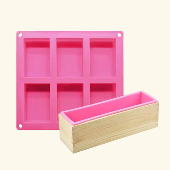 6 Cavity Rectangle Shape & Wooden Soap Mold Combo Pack