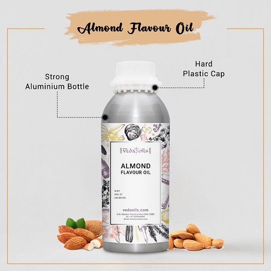 VedaOils leading manufacturer, distributor, and supplier of premium-quality Natural Almond Extract Oil, We specialize in oil -soluble almond flavoring oil and our catalog is wide enough to serve all your requirements. Our food flavor oils are gluten-free and naturally prepared. Almond flavouring oil does not include any toxins or chemicals that may harm your health in any way. It is free from alcohol, animal-based ingredients, and artificial preservatives. Therefore, even vegans may use it as per their requirements.
