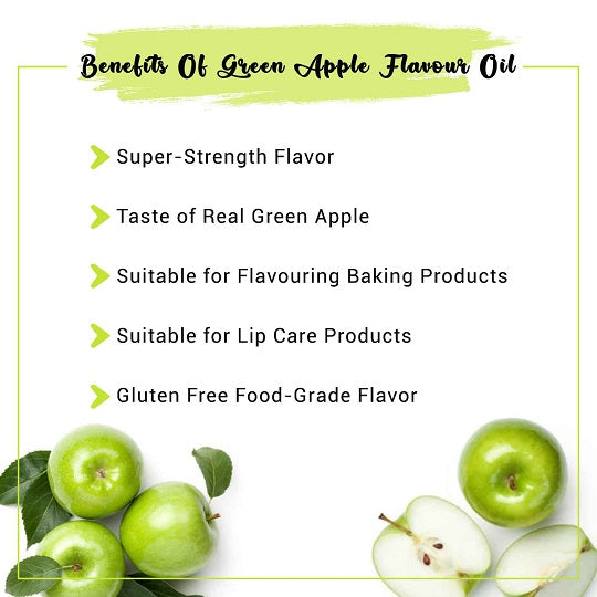 Green Apple Flavor Oil is made from farm-fresh, juicy, and delicious green apples. The sweet and tangy flavors of green apple are quite refreshing to taste. It has a juicy and flavorful taste that melts in the mouth easily. This mouthwatering Green Apple Flavoring Agent will allow you to enjoy the taste of perfectly ripe, crispy green apples throughout the year. The natural tanginess and fruitiness of apple super-strength oil add a great taste to almost all food items.