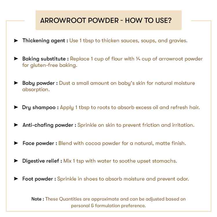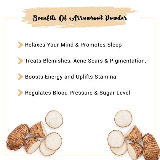 Natural Arrowroot Powder is a starch that is produced from the arrowroot plant. The powder is gluten-free and is a great substitute for cornstarch. Ararot powder keeps your skin radiant, nourished, and healthy. The powder has no side effects and is completely safe on all skin types.