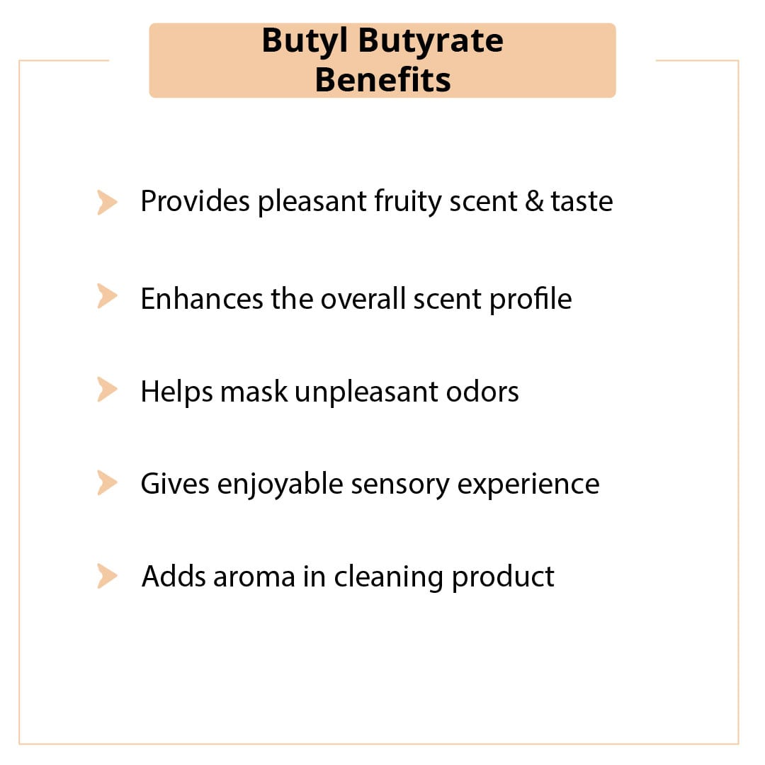 Furthermore, the compound is utilized as a solvent in various applications, such as in paints, coatings, and adhesives. It provides good solvency and volatility properties, contributing to the effectiveness and stability of these products. Overall, butyl butyrate offers a versatile range of applications and is valued for its fruity aroma, flavor, and solvent properties. Its presence can be found in everyday products, enhancing sensory experiences and serving as an essential ingredient in several industries.