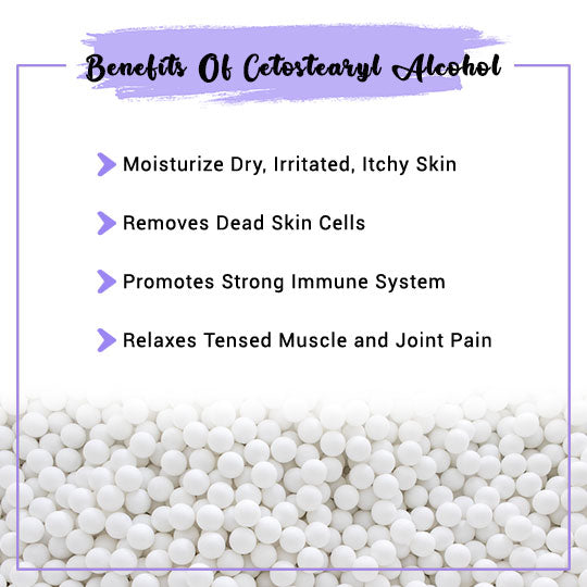 Cetostearyl Alcohol or Cetearyl Alcohol is a combination of fatty alcohols that is used widely in cosmetic applications. It is found naturally from coconut oil, palm oil, etc. It is mainly produced in labs to obtain the desired quantity and quality. Natural Cetostearyl Alcohol prevents ingredients from separating as an effective emulsifier and sometimes used as stabilizing agent. It possesses emollient properties that might prove to be beneficial to skin.