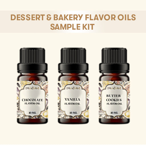 The Dessert & Bakery Flavor Oils Sample Kit is a must-have for anyone passionate about baking and flavor crafting. This carefully curated collection offers a wide range of rich, authentic dessert and bakery-inspired flavors, including Chocolate Flavor, Vanilla Flavor, Butter Cookies Flavour notes.