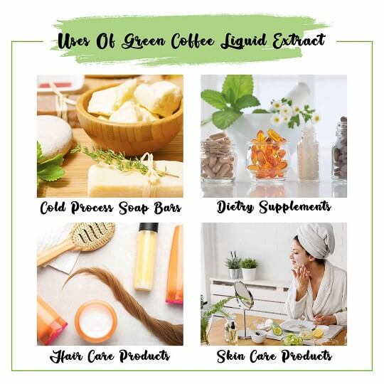 Acting as a natural detox, the organic green coffee liquid extract helps to eliminate toxins from the liver, reduces excess fat, and lowers bad cholesterol in the body thereby promoting Good Health and Wellness in general. To take more benefits of green coffee extract you can incorporate it into Scented Candles and Soap Making.