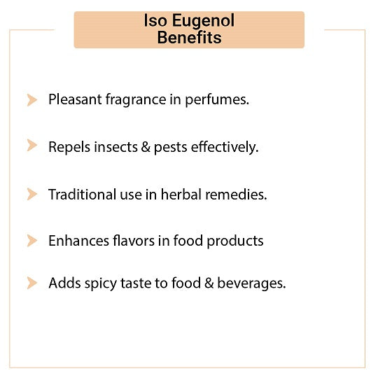 We employ numerous tests and quality checks to ensure that only Premium-quality Iso Eugenol reaches you. The highest quality and packaging standards are employed to deliver desirable results on usage. Also, our portal uses a secure payment gateway such as Visa, Mastercard to safeguard your transactions. Order Iso Eugenol Online in Bulk Quantity at Wholesale different packages so that you can order and use them as per your needs.