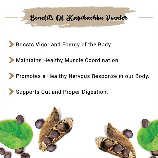 Naturmed's Kapikachhu Powder is made from a tropical legume known as velvet bean. It has agricultural and horticultural value, as well as therapeutic benefits. It is used to treat sexual diseases and to keep the neurological system healthy. This powder may aid in the rise of testosterone and sperm count in males, as well as the regularisation of ovulation in females.