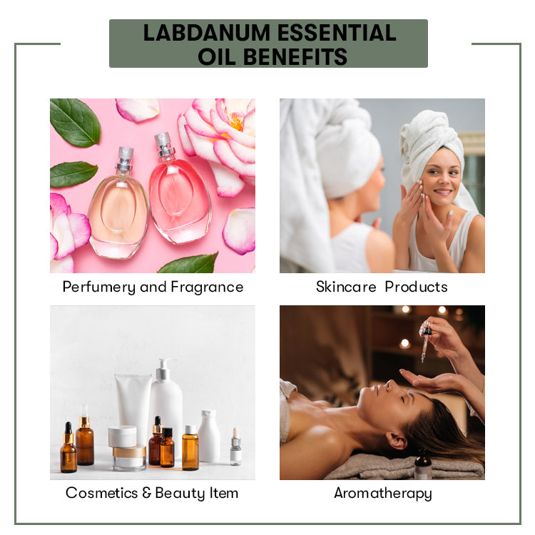 Labdanum Essential Oil is an essential oil obtained by steam distilling the resin obtained from the stems and leaves of the Cistus Ladanifer shrub. It is typically used for Making Soaps, Scented Candles and Perfumes due to its deep, floral, and refreshing aroma. Its ability to balance thoughts and emotions makes it effective for Aromatherapy as well.