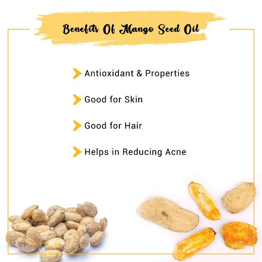 A: Mango seed oil keeps the hair soft, shiny, tangle-free, prevents dandruff and dryness of the scalp.