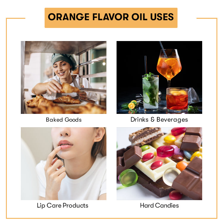 Since VedaOils Pure Orange Flavor Oil is a food-grade flavoring essence oil, you need not worry about anything while adding orange flavoring oil to your food preparations. However, since it is a concentrated and powerful flavor, you need to use it sparingly. Premium Grade Orange Flavor Essence is suitable for baking purposes and since they are oil-soluble, you can use them in a variety of food items.