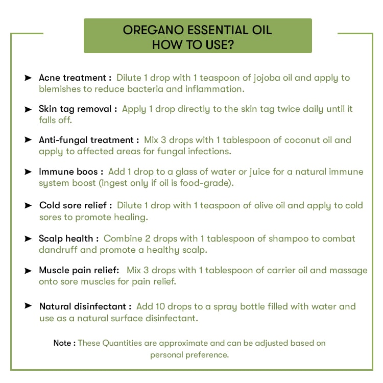 A: For different DIY Recipes & Health Purposes, different amount of Oregano Essential Oil is used. So try to Use in the right amount.