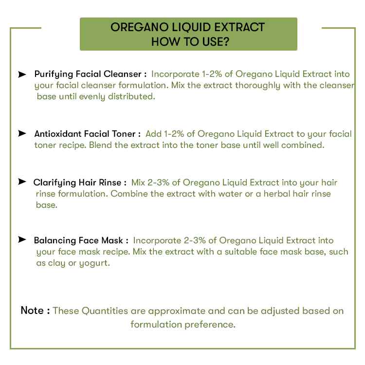 Shake well before use. 10-20 drops, three times a day or as directed by your practitioner. It is best to consult with a healthcare professional for personalized advice on how to use oregano liquid extract. Put the suggested amount in a glass of water, tea, or juice and drink the entire contents.