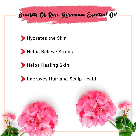 Rose Geranium essential oil is in great demand due to its Cosmetic Benefits. The powerful antioxidants present in Rose Geranium oil prevent the aging of the skin and improve the ability of your skin to heal and protect itself from the toxins that are present in the environment.