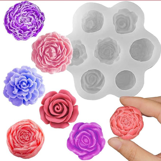 Small Rose Peony Flower Silicone Candle Mould - 7 Cavity