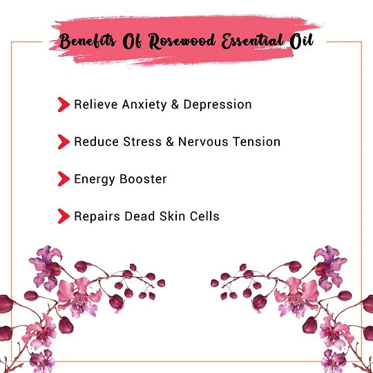 Rosewood essential oil has emerged to be one of the popular ingredients in cosmetic products. Do not contain any synthetic fragrances, colors, and preservatives. You can include it in your regular skincare routine without any doubts. Rosewood Essential oils easily blend well with many other essential oils belonging to the wood and floral family. However, do not forget to do a patch test on your elbow to check whether it suits your skin or not, especially after blending it with other concentrated oils.