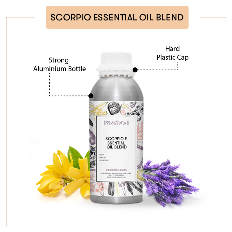 VedaOils is a leading manufacturer, distributor, supplier, and wholesaler of premium quality Scorpio Essential Oil Blend. We offer all of the Essential Oil Blends at affordable price and in bulk quantities. We do not add any chemical-based ingredients like SLS, parabens, phthalates, etc., in the manufacturing of our Best Zodiac Sign Blend.