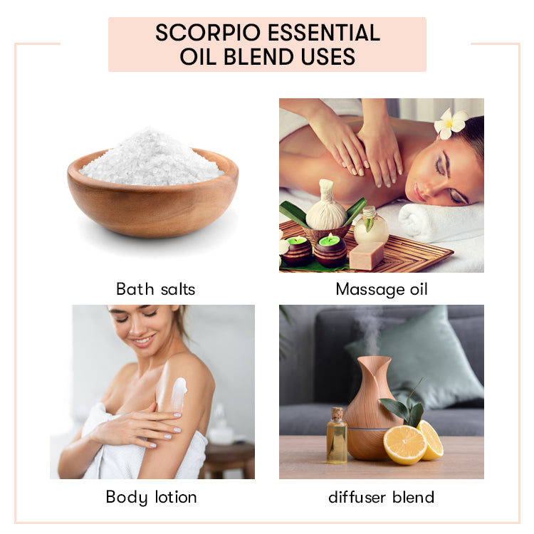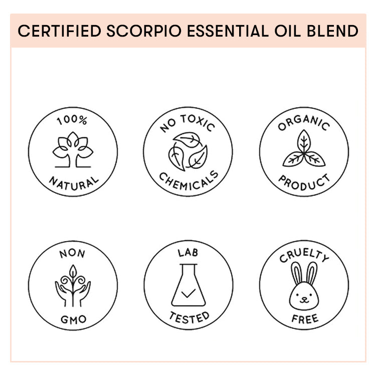 - Diffuser: Add 6-8 drops of your Scorpio Blend to a diffuser. Let the unique aroma nurture your sense and soothe your soul.