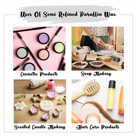 White Semi-Refined Paraffin Wax Use For: Skincare, cosmetics, therapeutic uses, hair care, candles, soaps, paints